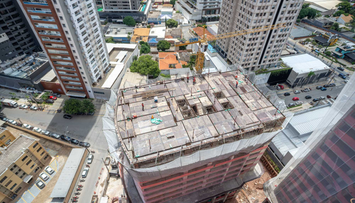A fluidez na volumetria da fachada do Sync segue o mesmo conceito das outras torres do Cidade Opus, criando uma unidade arquitetônica imponente no skyline da cidade.