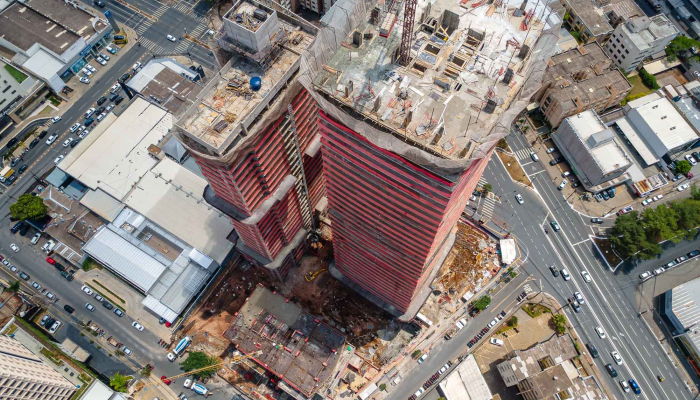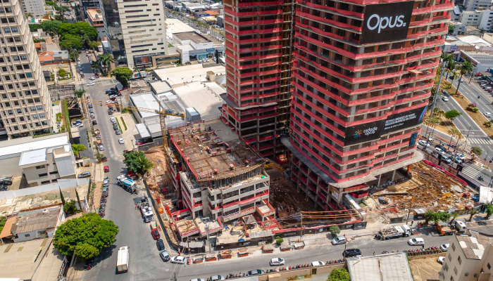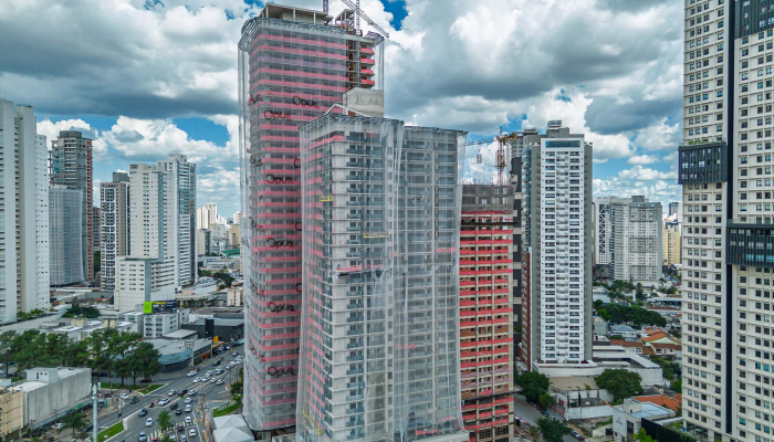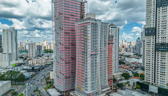 A fluidez na volumetria da fachada do Sync segue o mesmo conceito das outras torres do Cidade Opus, criando uma unidade arquitetônica imponente no skyline da cidade.